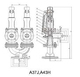 A38Y、A43H、A37H型安全閥除三通(材料為WCB)外,欺余零件的材料均和A47H、A48Y型彈簧式安全閥相同。 |